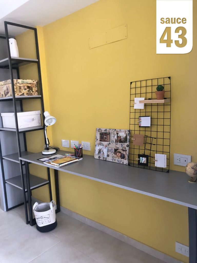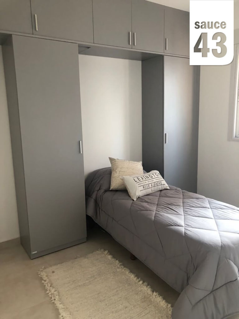 Se plantean unidades totalmente equipadas, con espacios flexibles y optimizados por medio del mobiliario, donde por medio de camas escritorio rebatibles se pueda utilizar el dormitorio como una sala de estudio adicional o la sala como un “dormitorio extra”.