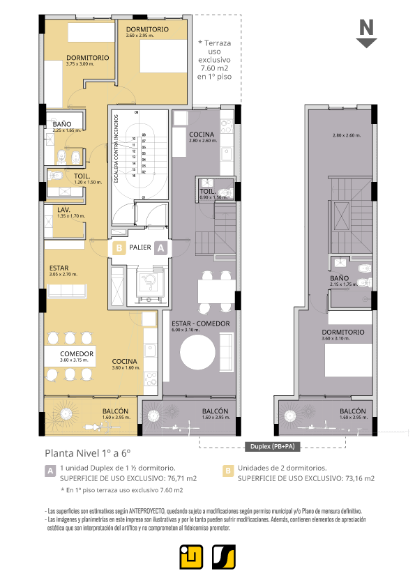 – Dpto. A Duplex 1 Dormitorios + * Sup. Propia 76.71 m² m2