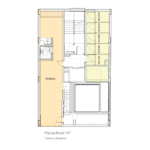 Además el edificio cuenta con espacios de uso común, concibiendo el remate como un gran mirador de uso social con terrazas equipadas mobiliario fijo, asador y piscina con solárium.